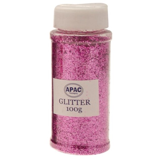 100g tub of pink glitter. Use with glue pens to personalise balloons, add a bit of sparkle to flower arrangements and displays or any crafting projects.