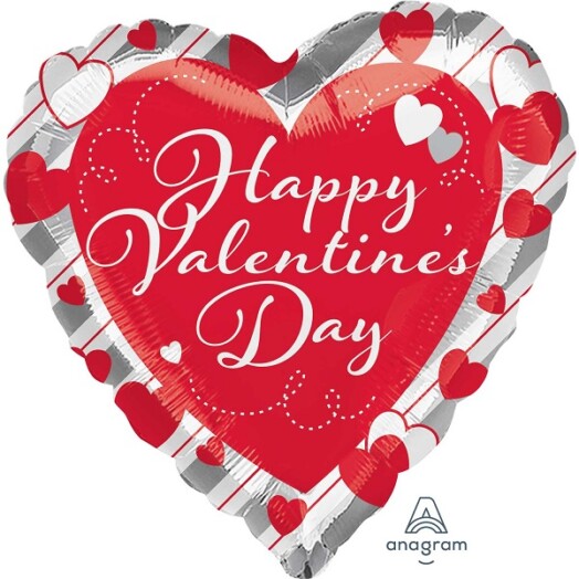 17 Inch Happy Valentine’s Day Red Heart & Silver Stripes Foil Balloon