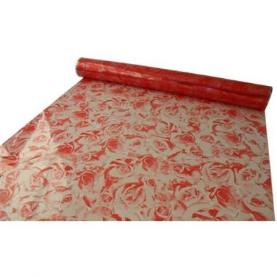 80cm x 100m cellophane with red roses. Not just for floral arrangements, but can also be used on hampers or gift baskets.